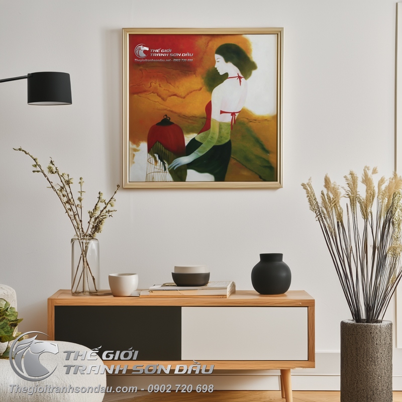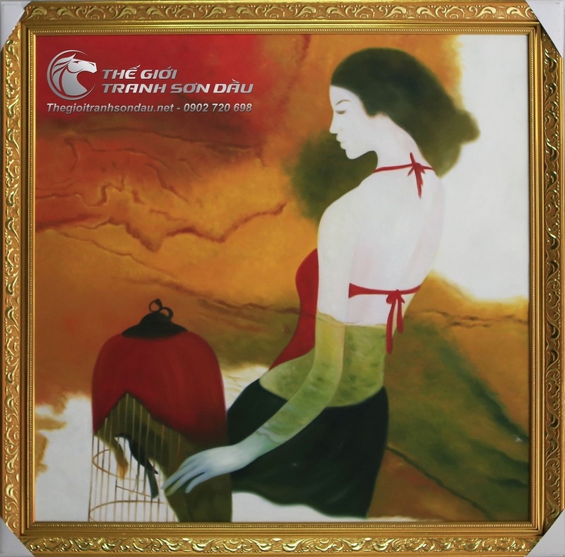 Tranh Sơn Dầu Vẽ Cô Gái Mặc Áo Yếm
