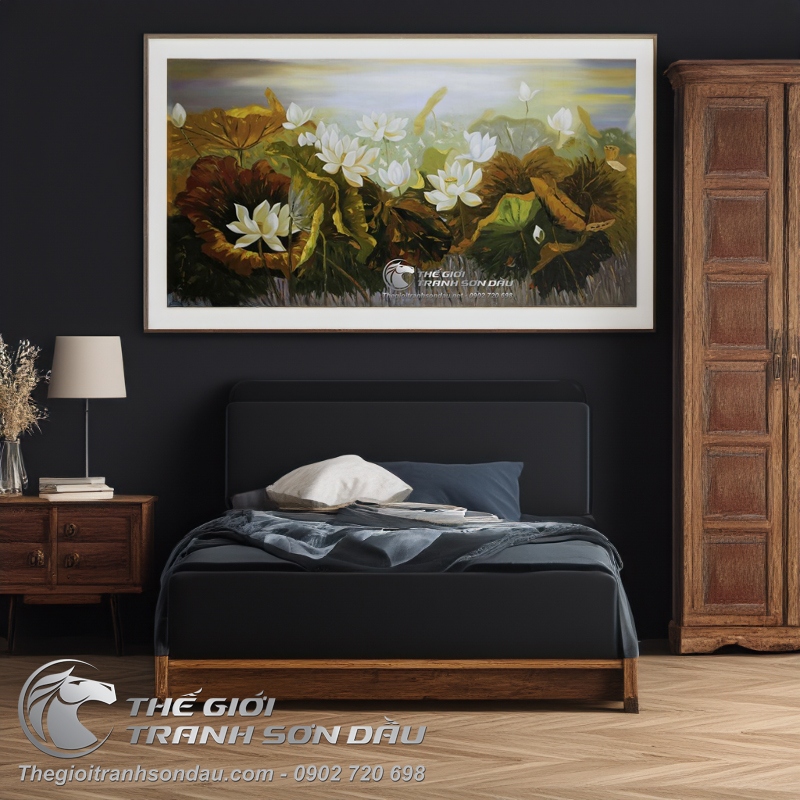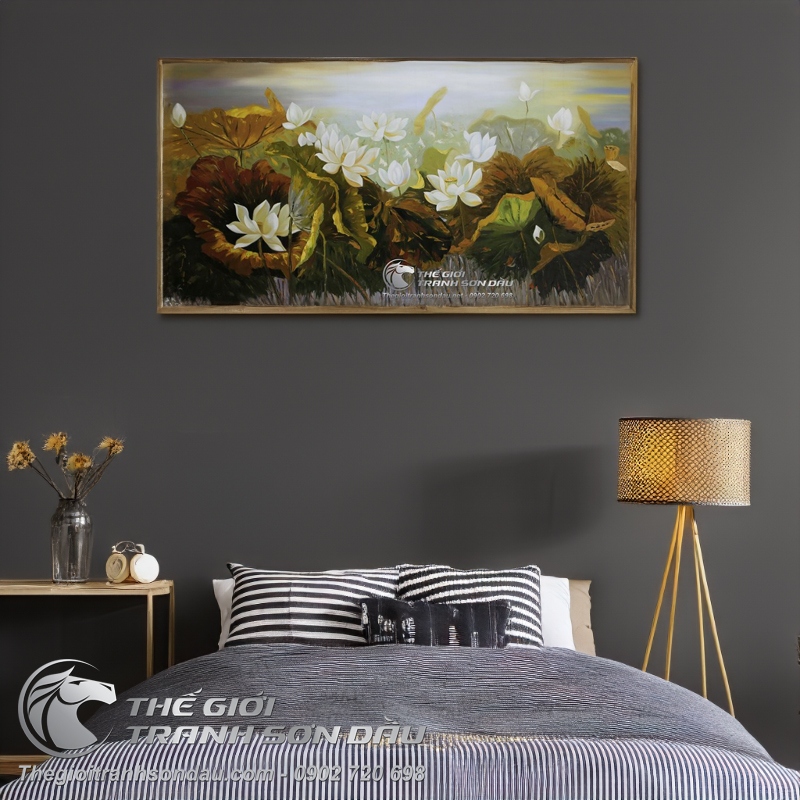 Tranh Sơn Dầu Vẽ Đầm Hoa Sen Trắng
