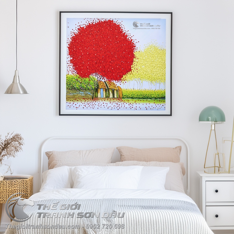 Tranh Sơn Dầu Cây Đỏ Phong Cảnh Việt Nam