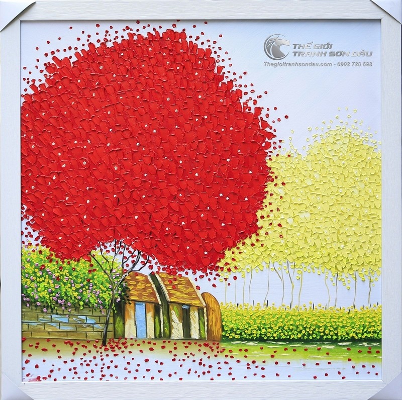 Tranh Sơn Dầu Vẽ Dày Màu Phong Cảnh Việt Nam Cây Đỏ