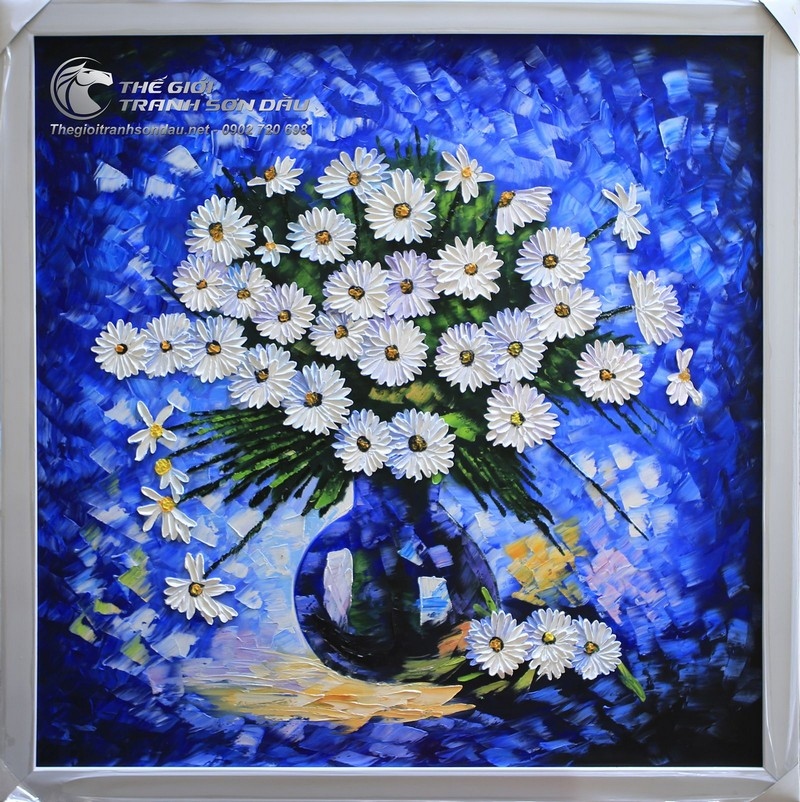 Tranh Sơn Dầu Vẽ Hoa Cúc Trắng Dày Màu