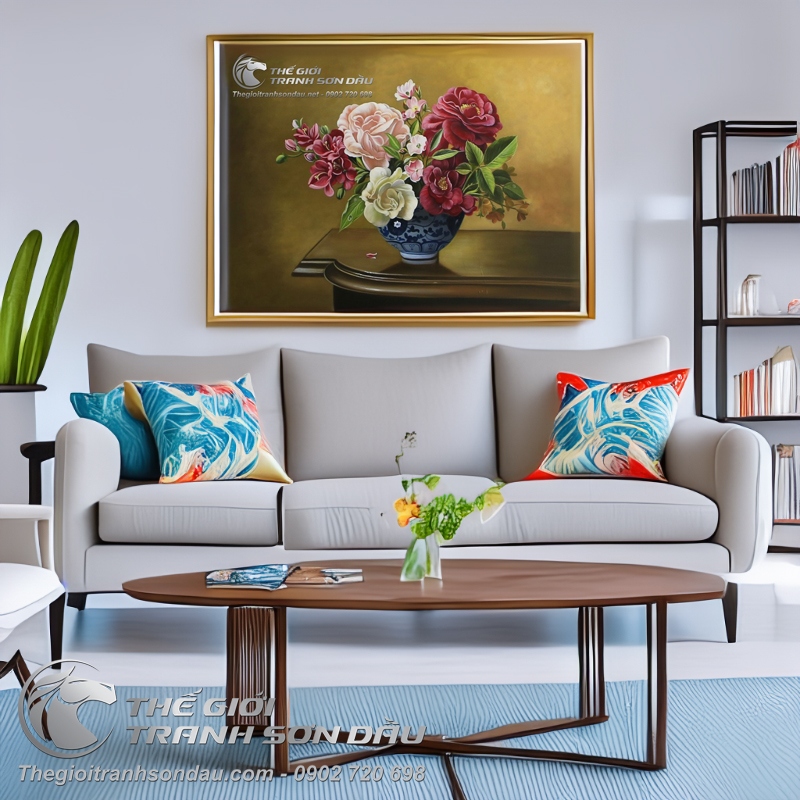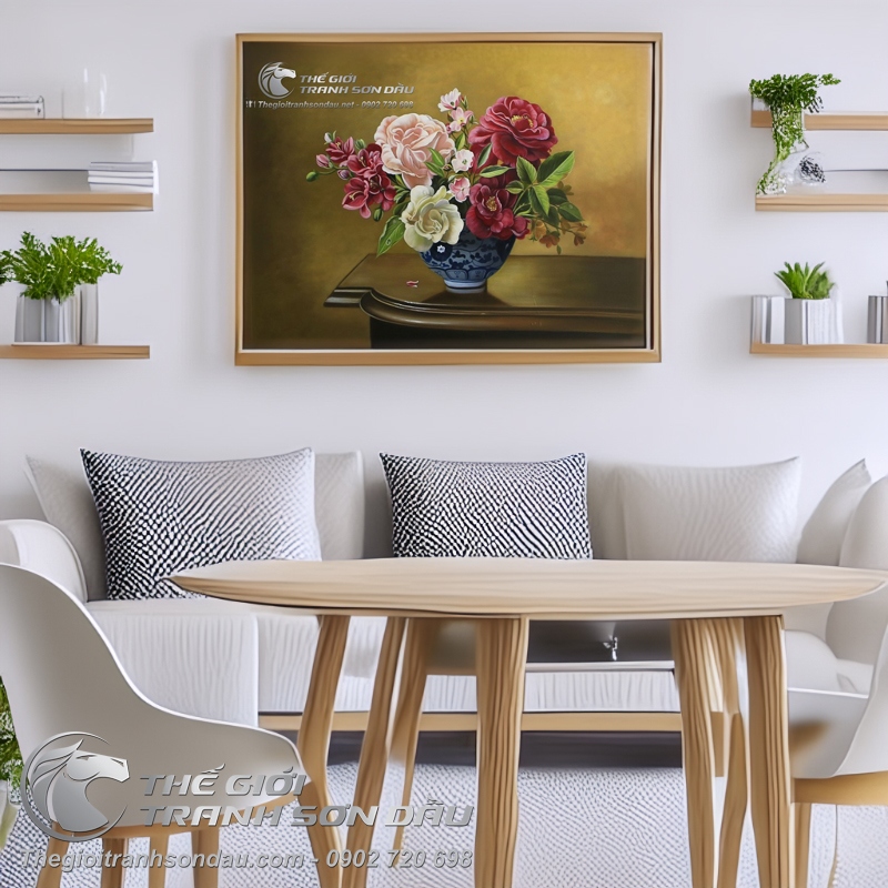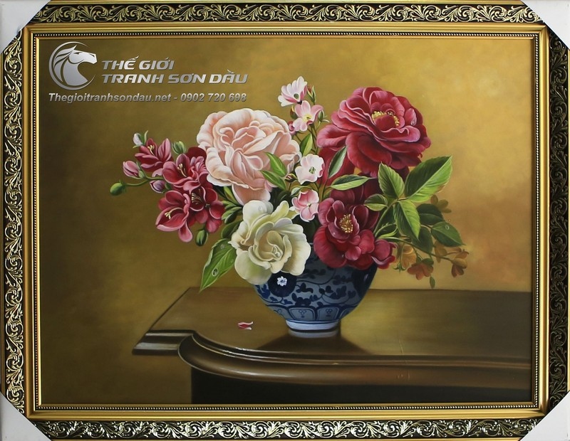 Tranh Sơn Dầu Lọ Hoa Mẫu Đơn Tả Thực