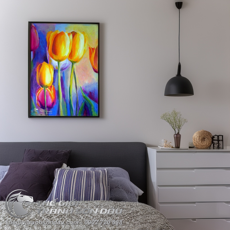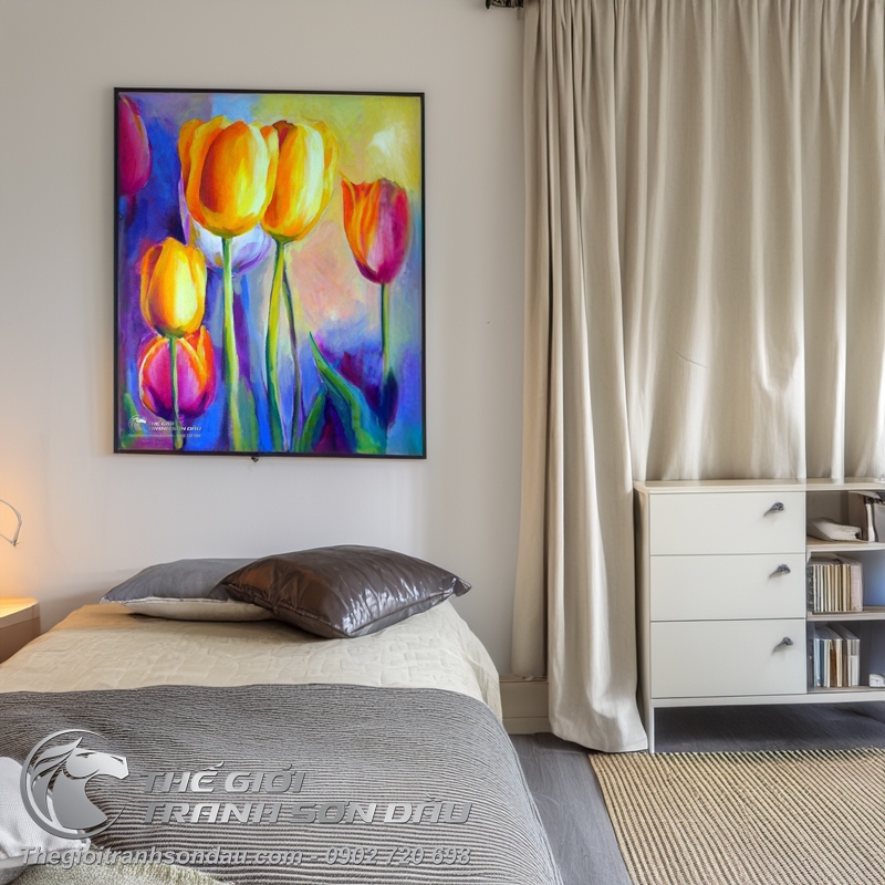 Tranh Sơn Dầu Vẽ Hoa Tulip Màu Sắc Rực Rỡ