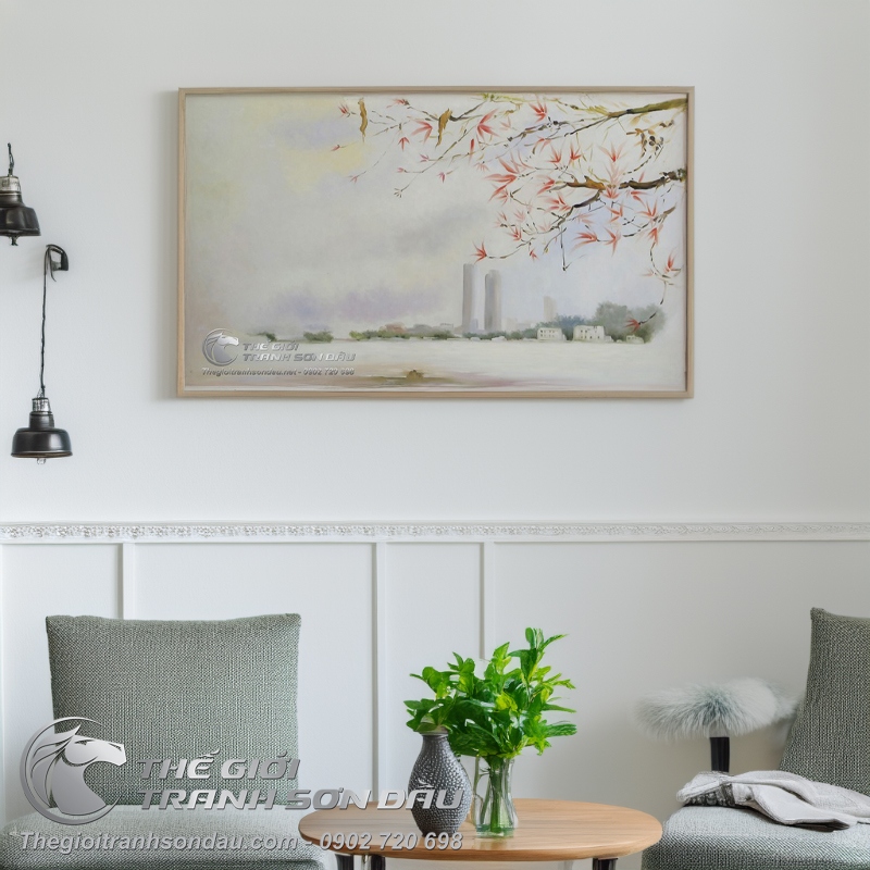 Tranh Sơn Dầu Vẽ Phong Cảnh Thành Phố Mờ Ảo