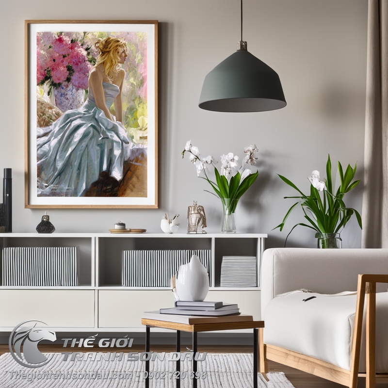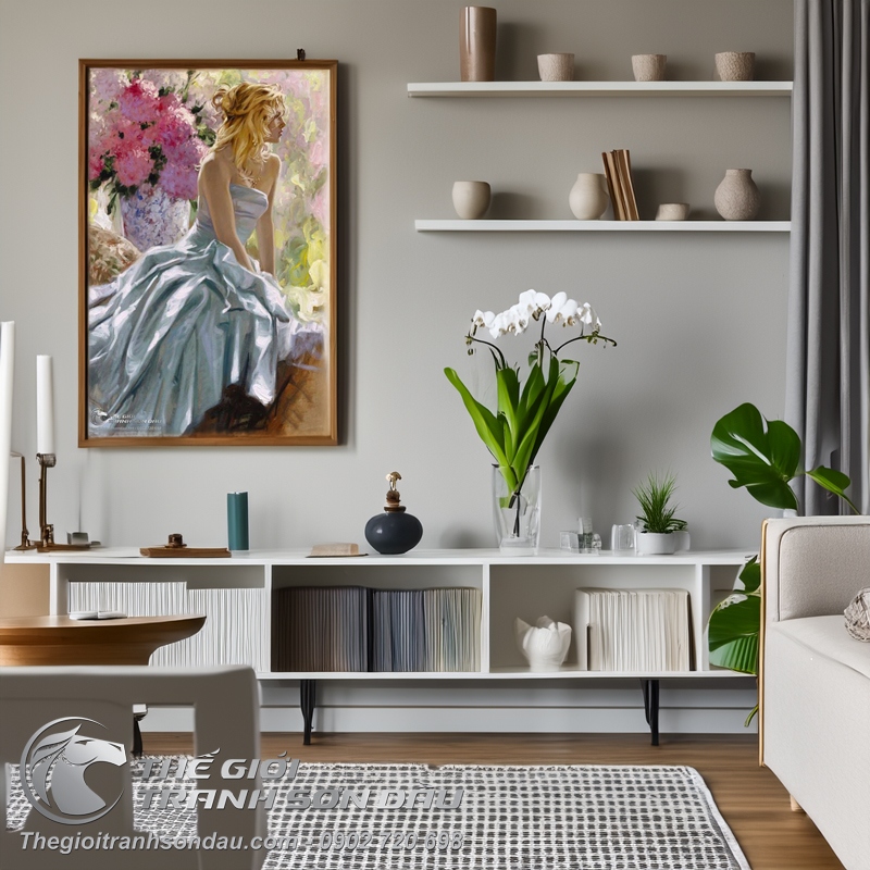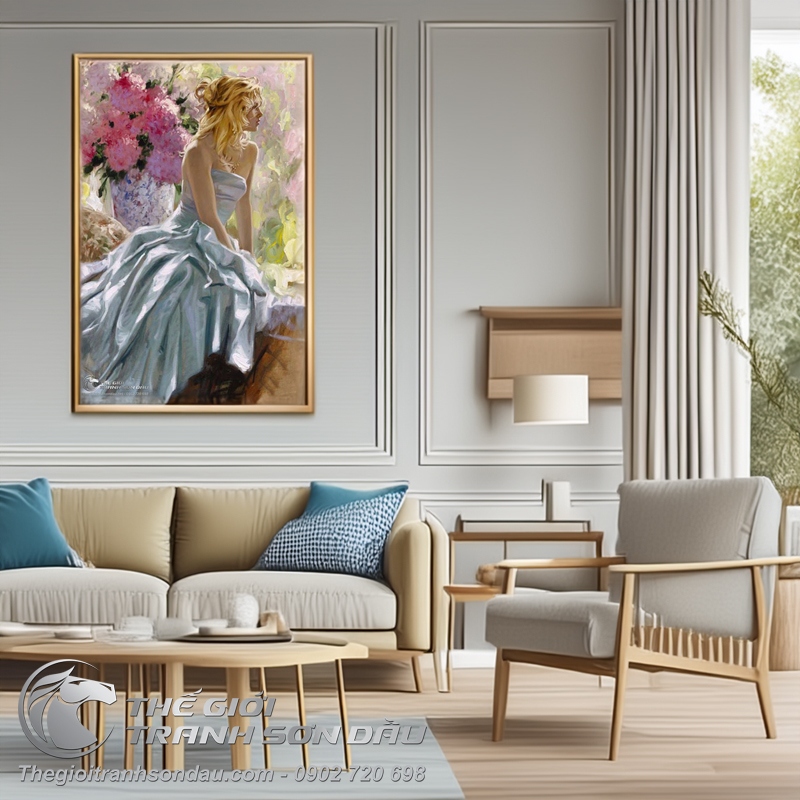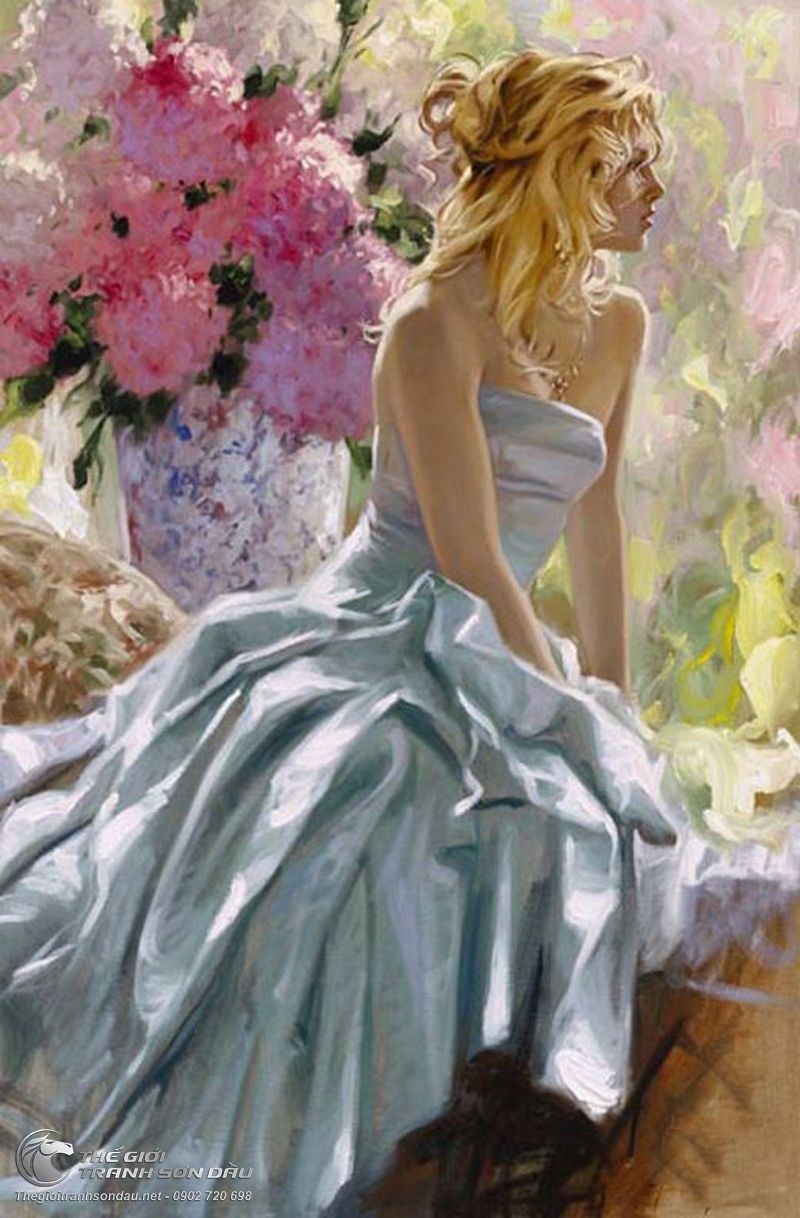 Tranh Sơn Dầu Vẽ Thiếu Nữ Mặc Đầm Trắng
