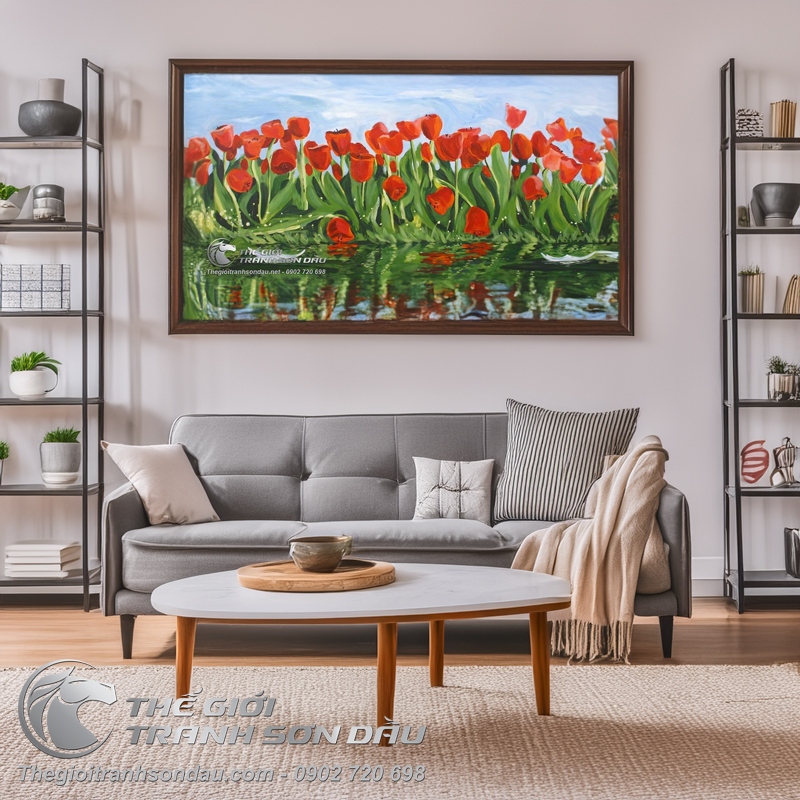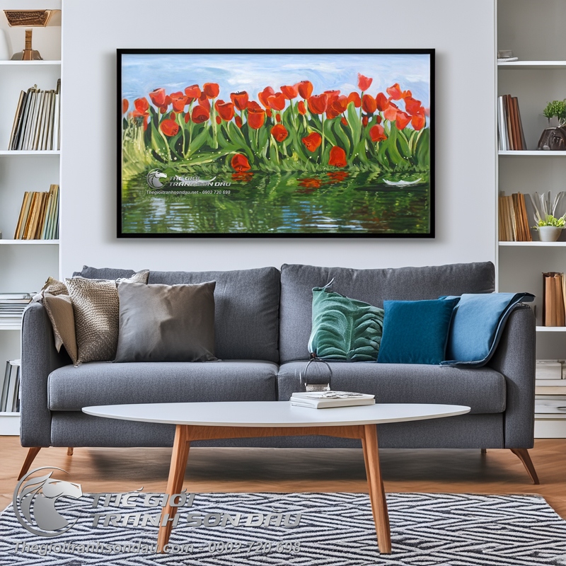Tranh Sơn Dầu Vườn Hoa Tulip Màu Đỏ