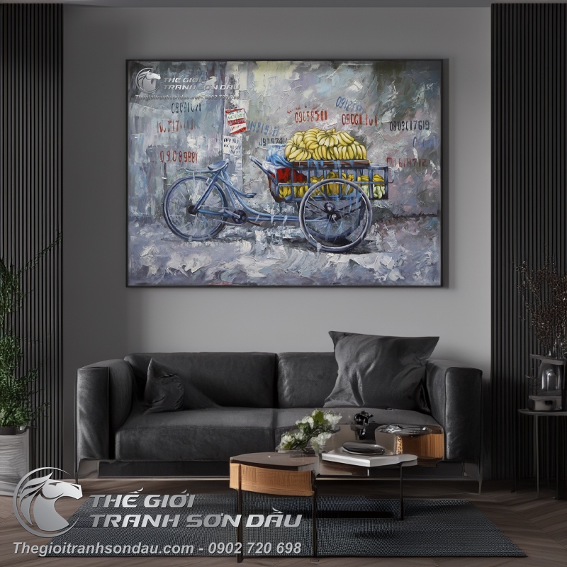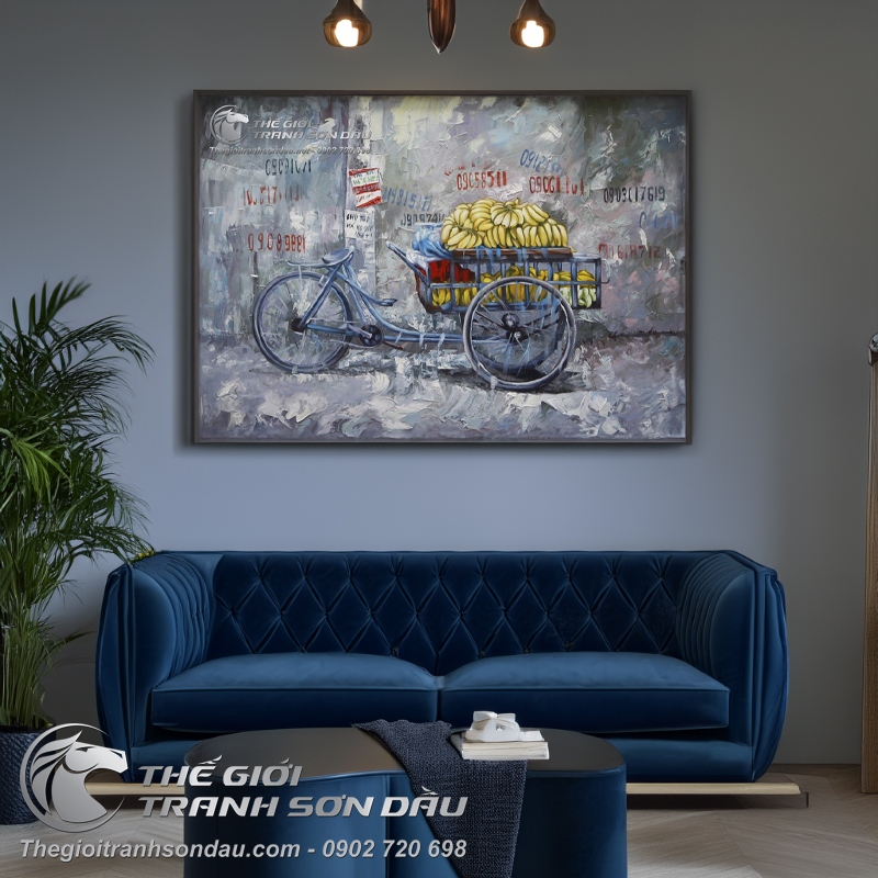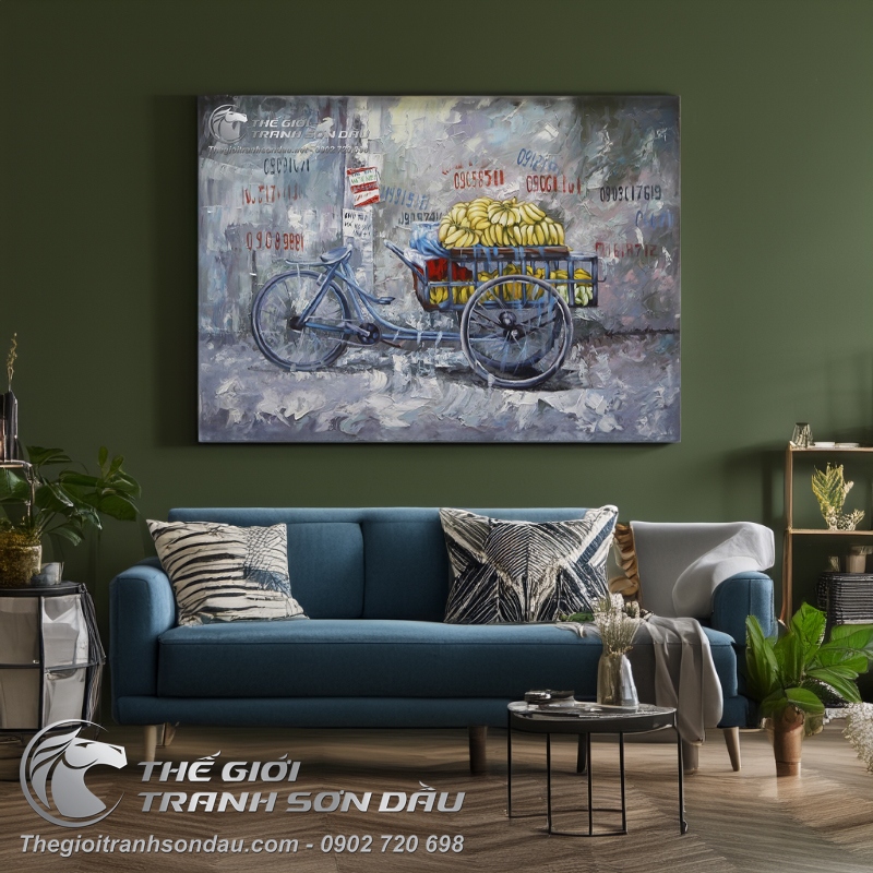 Tranh Sơn Dầu Xe Bán Chuối Vẽ Kiểu Nghệ Thuật