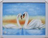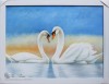 - Bằng việc tinh tế trong việc pha trộn màu sắc kết hợp với những nét vẽ đầy tự nhiên và mềm mượt, người họa sĩ đã tạo ra một khung cảnh hồ nước trong xanh vào một buổi sớm bình minh khi mặt trời dần ló rạng để làm nổi bật lên hình ảnh của đôi thiên nga với bộ lông trắng tinh khôi mềm mượt vô cùng đẹp đẽ và diễm lệ. Những con chim thiên nga trắng từ xưa đã là gắn liền với sự đẹp đẽ, trong trắng,cao quý và đầy sang trọng.