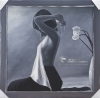 Tranh Thiếu Nữ Bán Khỏa Thân Áo Yếm Trắng Đen