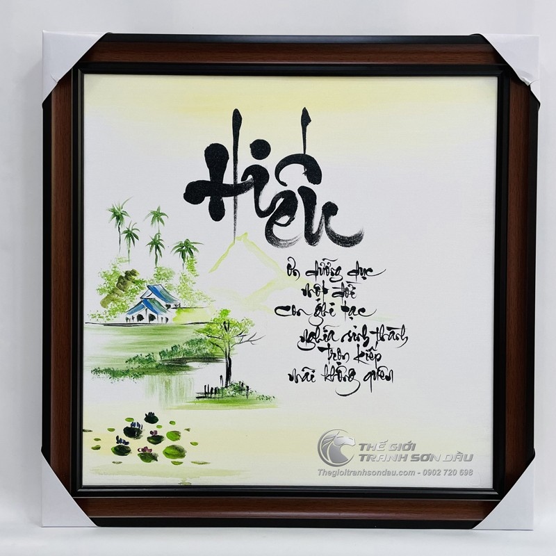 - Tranh vẽ sơn dầu thư pháp chữ Hiếu công cha nghĩa mẹ là một dòng tranh nghệ thuật có giá trị cao về mặt thẩm mỹ và triết lý nhân sinh. Thể hiện được lòng hiếu kính của thế hệ con cháu dành cho thế hệ đi trước. Ghi nhớ, dạy dỗ và khắc ghi những giá trị cốt lõi của một con người, có tác dụng răn dạy và dưỡng dục tuyệt vời đối với tất cả mọi người.