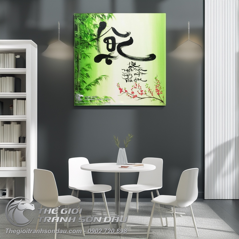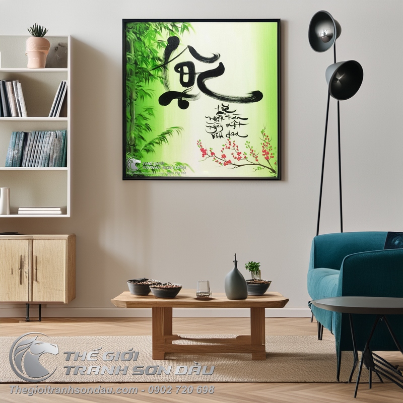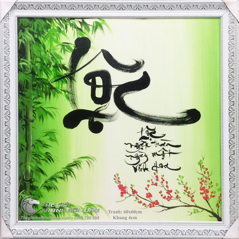 Tranh Thư Pháp Chữ Lộc Trúc Và Hoa Mai