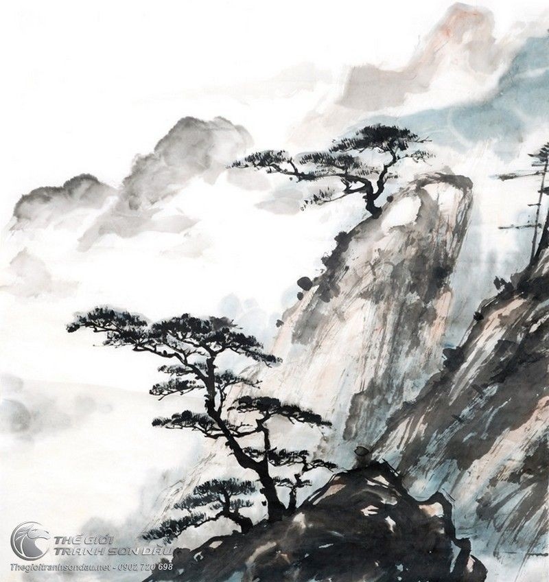 Tranh Thủy Mặc Cây Tùng Trên Đỉnh Núi Đẹp Giá Rẻ Giảm 40%