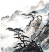 Tranh Thủy Mặc Cây Tùng Trên Đỉnh Núi
