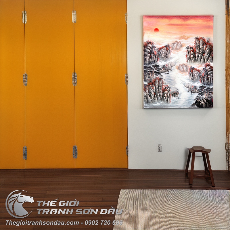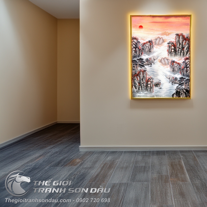 Tranh Thủy Mạc Hoàng Hôn Trên Núi Đỏ Hàng Mới 100% Giá Tốt