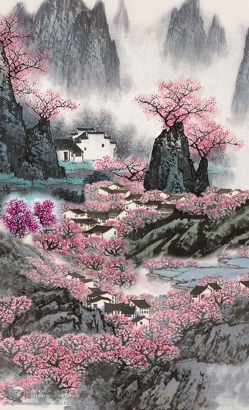 Tranh Thủy Mạc Sơn Thủy Mùa Xuân Giá Rẻ Giao Nhanh 24h