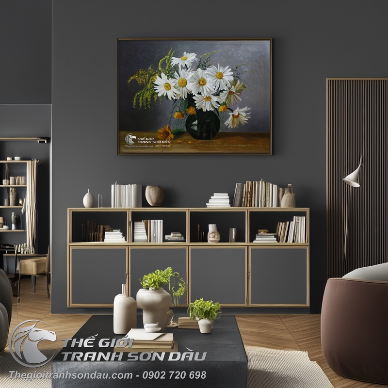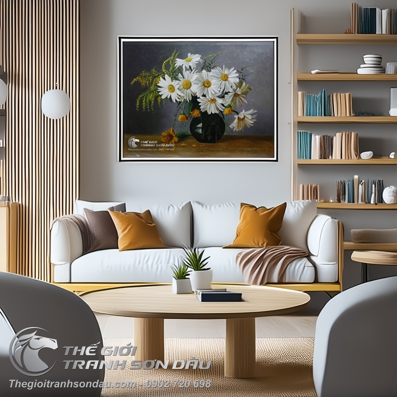 Tranh Tĩnh Vật Bình Hoa Cúc Trắng