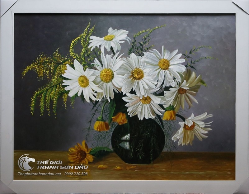Tranh Vẽ Sơn Dầu Bình Hoa Cúc Đẹp Giá Rẻ