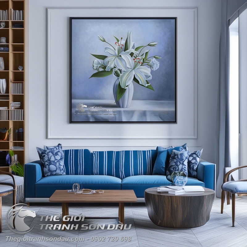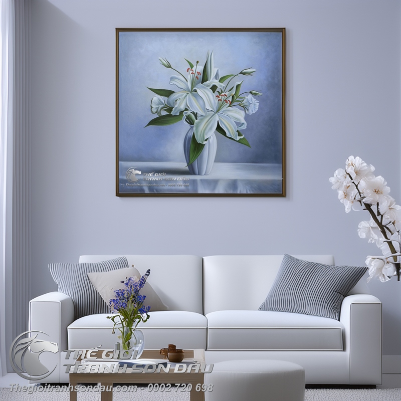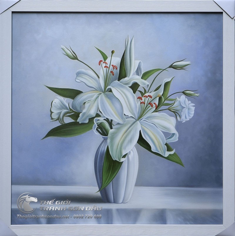 Tranh Tĩnh Vật Bình Hoa Trắng Tinh Khiết