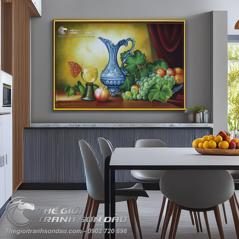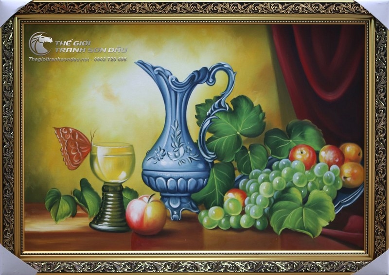 Tranh Tĩnh Vật Trái Cây Và Bình Rượu