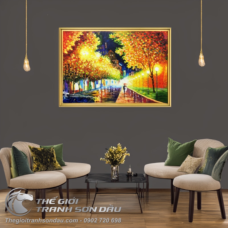 Tranh Sơn Dầu Trang Trí Phố Lên Đèn