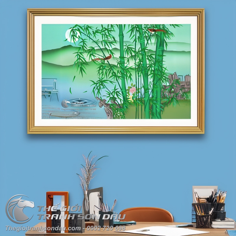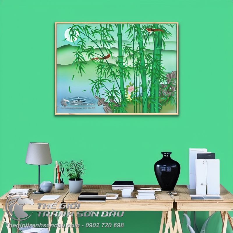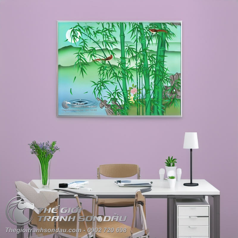 Tranh Trúc Hoa Sen Trúc Và Núi