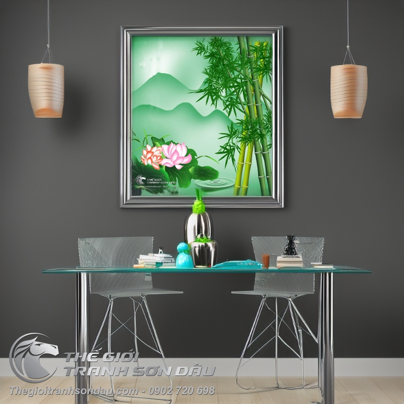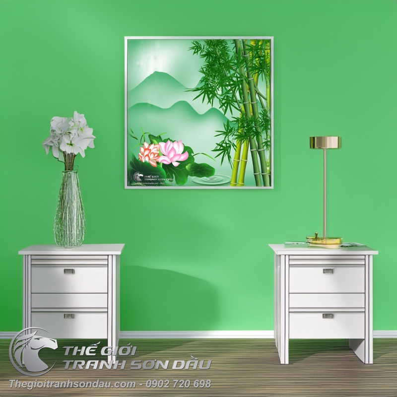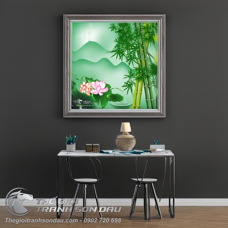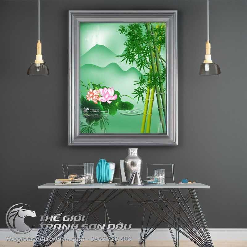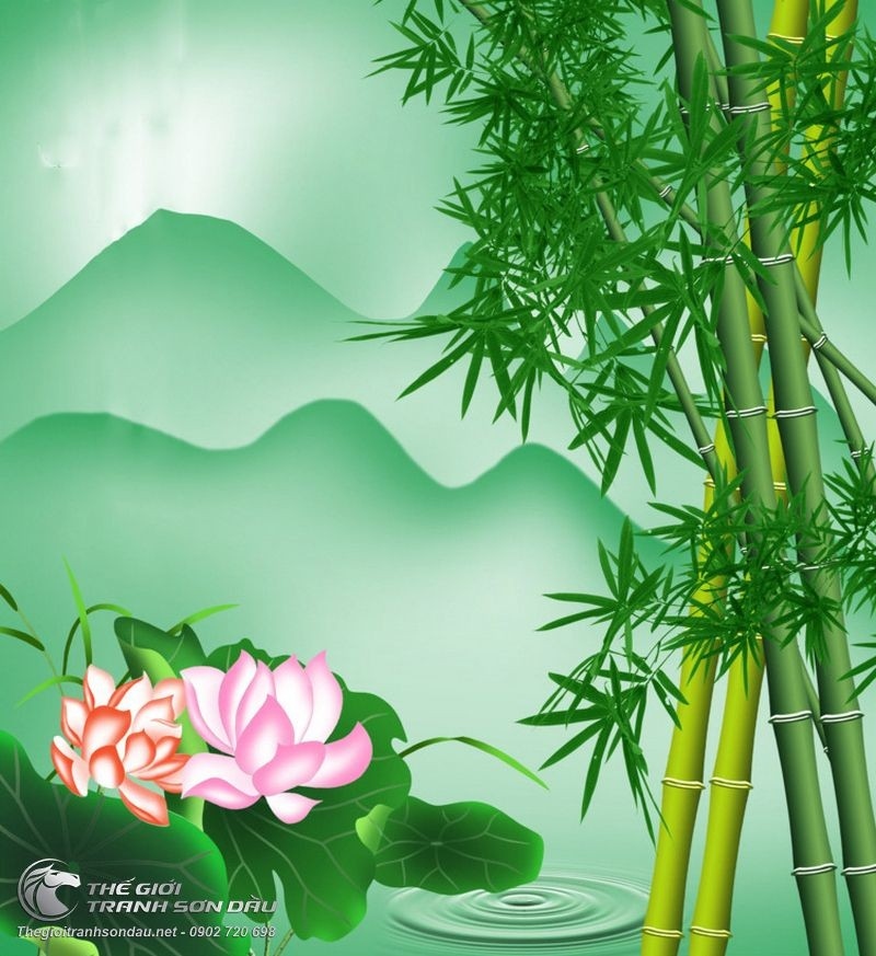 Tranh Trúc Hoa Sen Trúc Và Núi