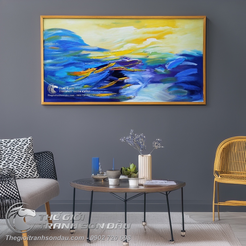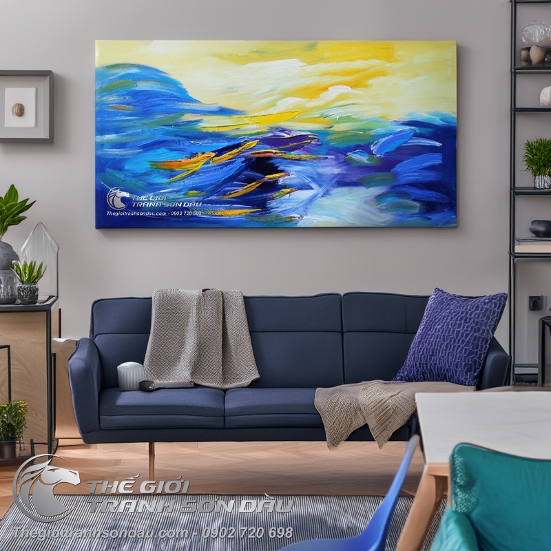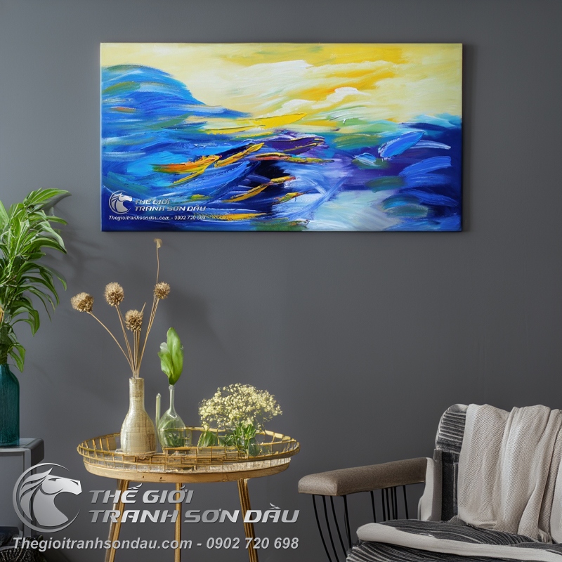 Tranh Trừu Tượng Sáng Tác Tông Màu Xanh Dương