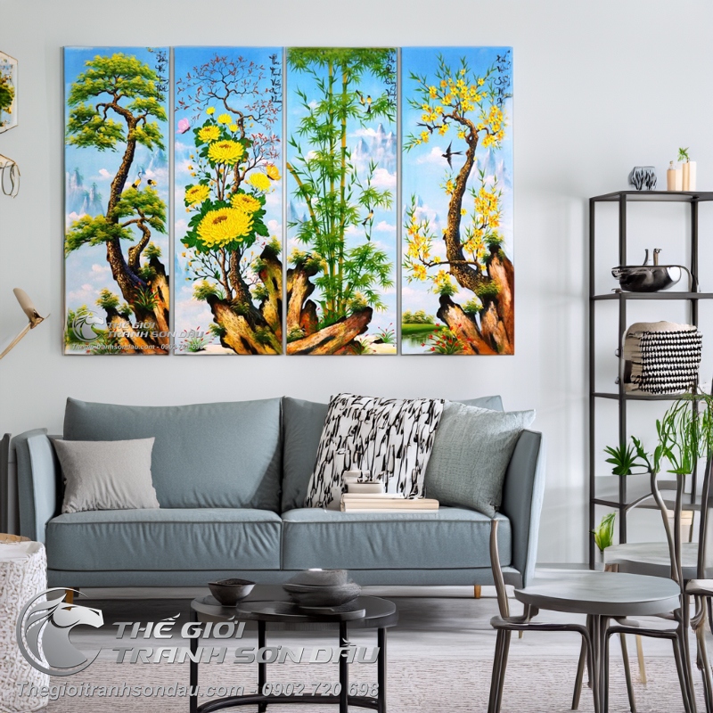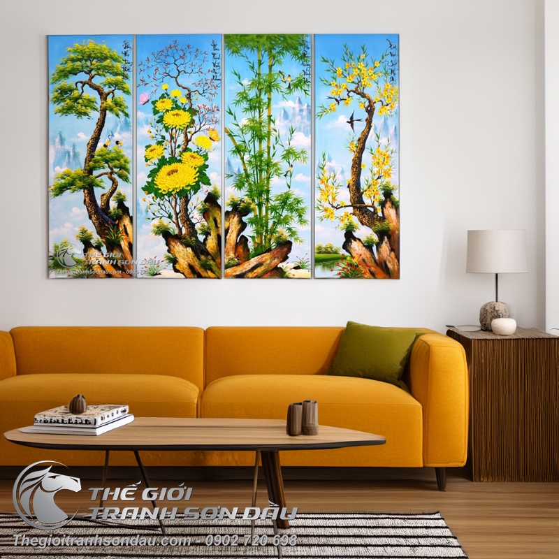 Tranh tứ bình Tùng Cúc Trúc Mai vẽ sơn dầu