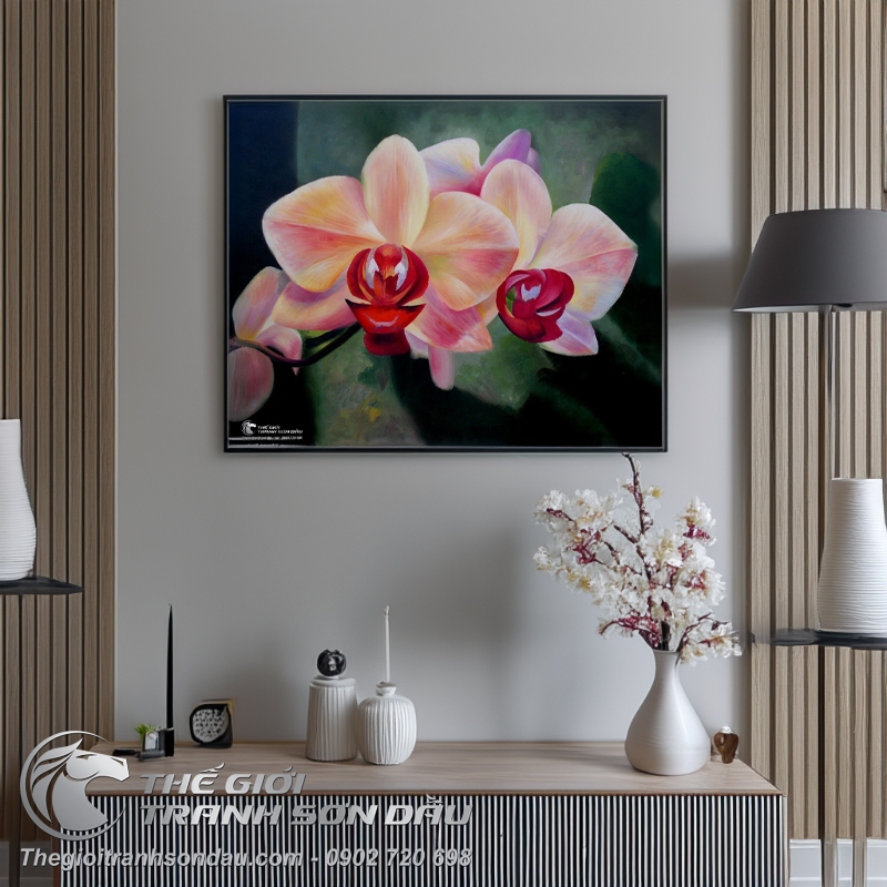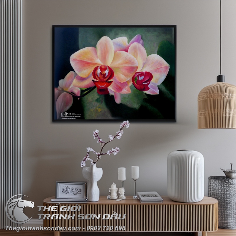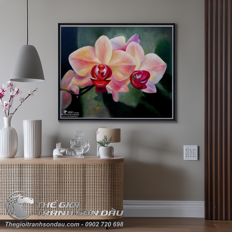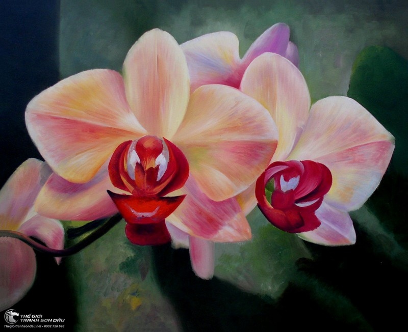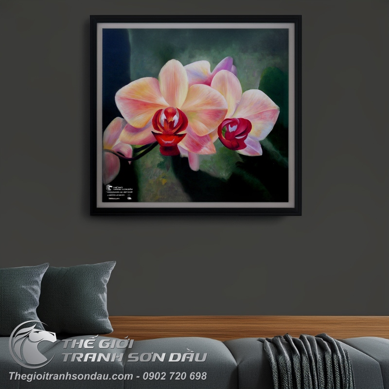 Tranh Cành Hoa Lan Hồng Tả Thực