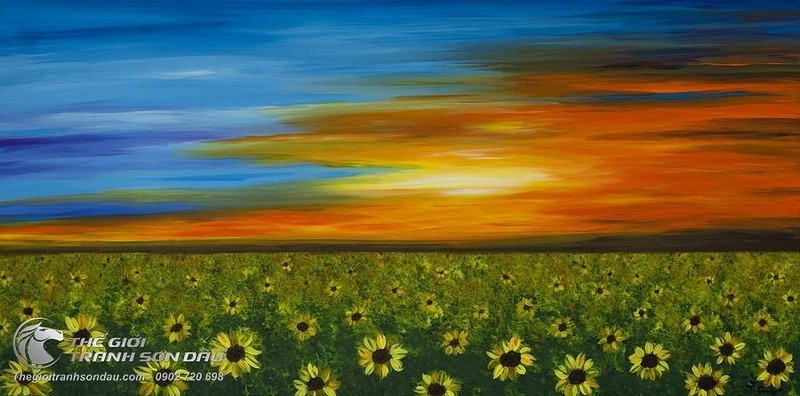 Tranh Vẽ Bãi Hoa Mặt Trời Dưới Ánh Bình Minh