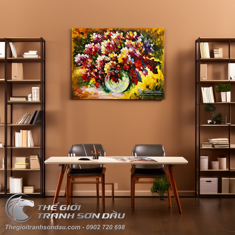 Tranh Vẽ Sơn Dầu Hoa Nở Muôn Màu