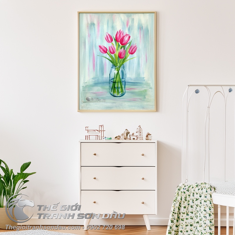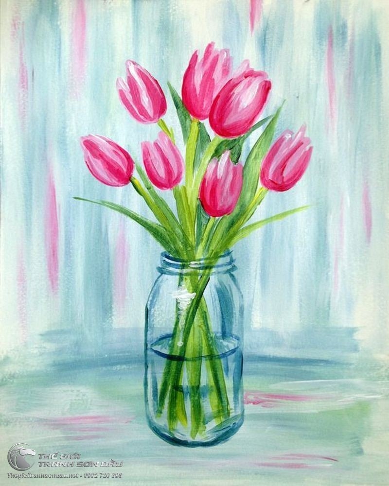 Tranh Vẽ Bình Hoa Tulip Nghệ Thuật Đẹp
