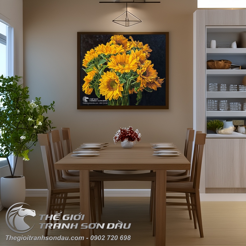 Tranh Vẽ Bó Hoa Hướng Dương Cắm Ly Thủy Tinh
