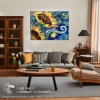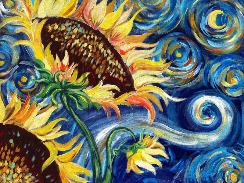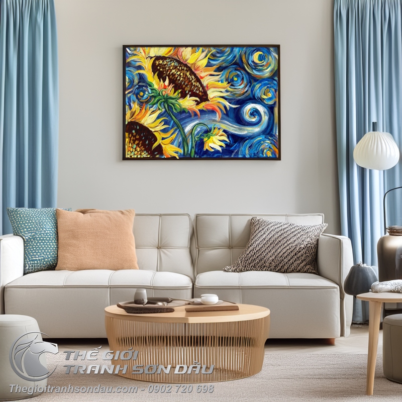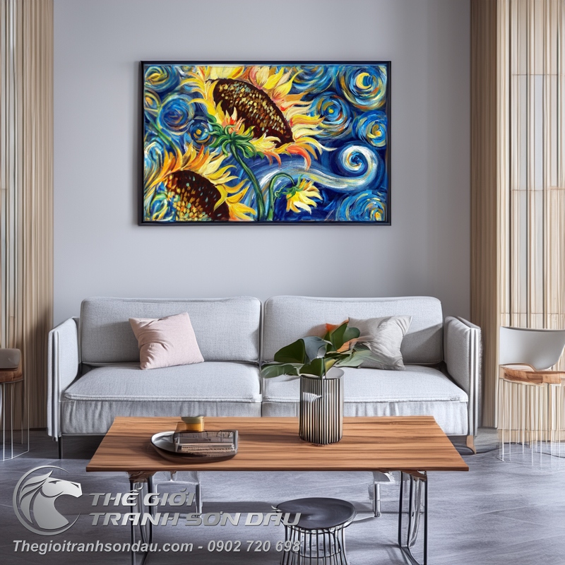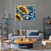 Tranh Vẽ Bông Hoa Hướng Dương Nền Xanh Ấn Tượng