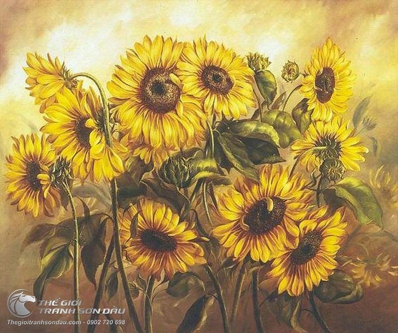 Tranh Vẽ Bông Hoa Hướng Dương Trong Vườn Chiều