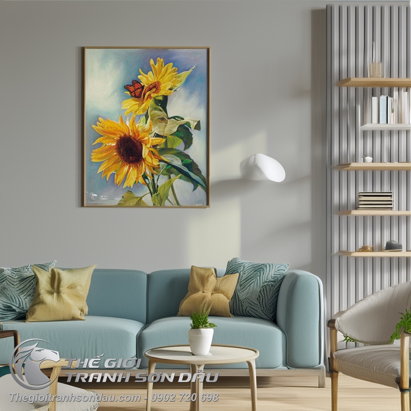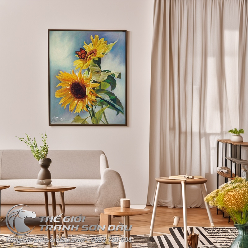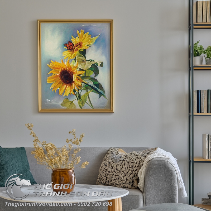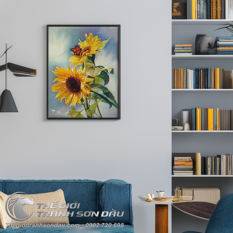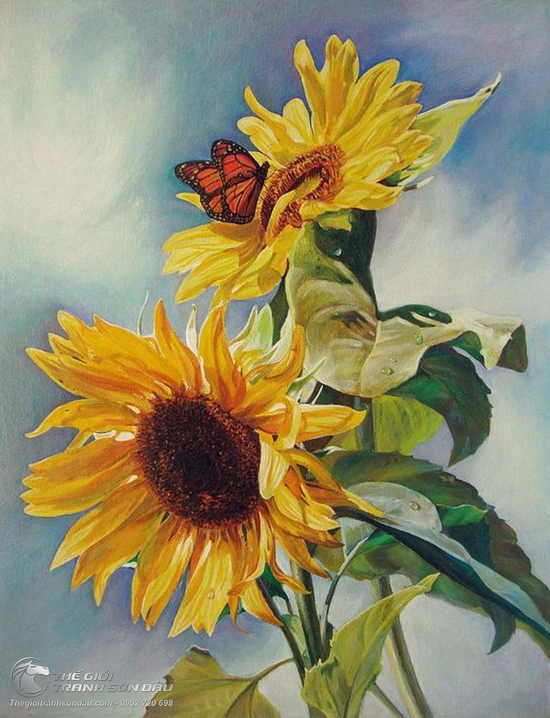 Tranh Vẽ Bướm Đậu Trên Hoa Mặt Trời