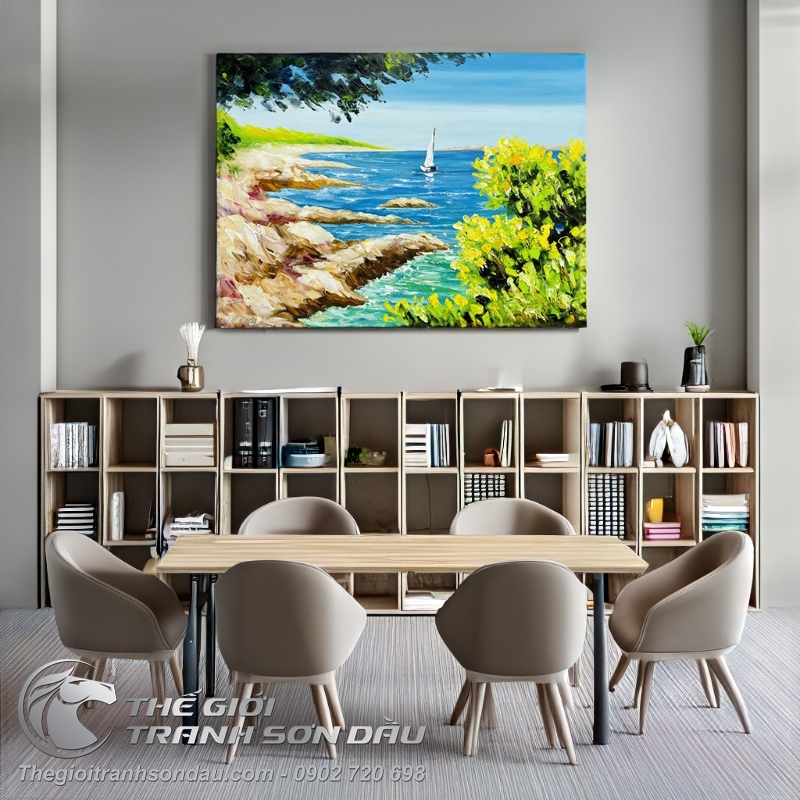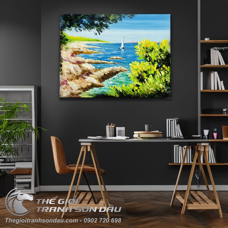 - Bức tranh vẽ bằng sơn dầu cảnh con thuyền nhỏ ra khơi lấy cảm hứng từ cảnh biển bên bờ Địa Trung Hải. Nơi nổi tiếng với những khung cảnh thiên nhiên tuyệt đẹp của mây trời, biển cả bao la, sự kết hợp hoàn hảo giữa thiên nhiên & con người mang tới những nét đẹp lay động tâm trí người xem. Sản phẩm là lựa chọn lý tưởng để trang trí cho văn phòng, khách sạn để mang tới một làn gió mới cho không gian.