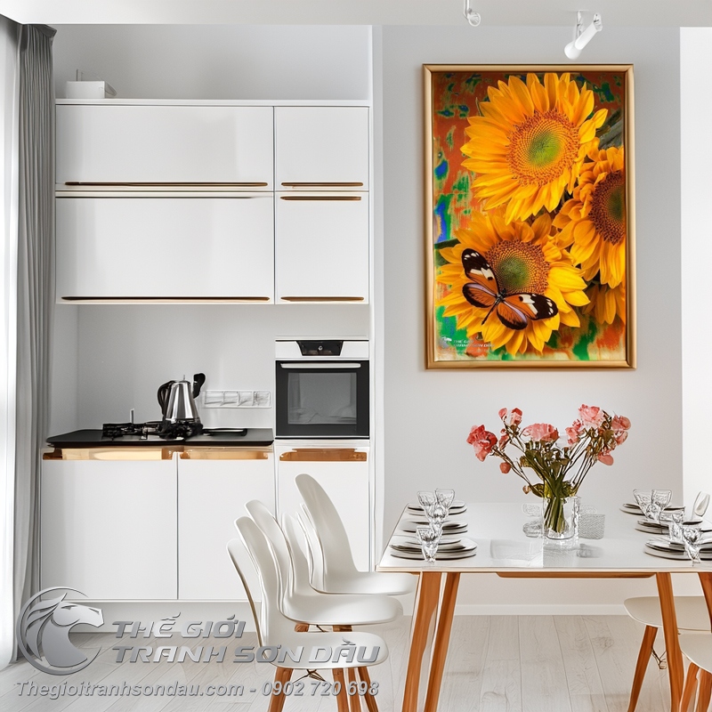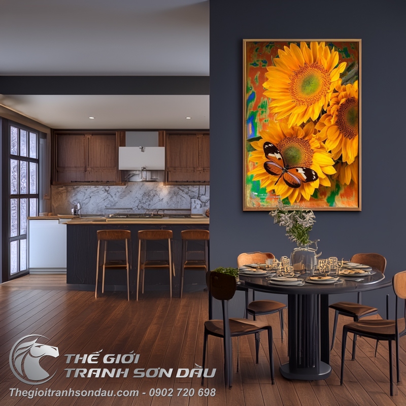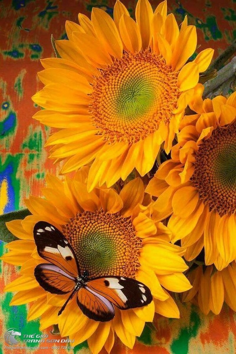 Tranh Vẽ Chú Bướm Đậu Trên Hoa Hướng Dương