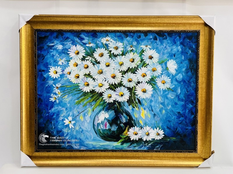 Tranh Sơn Dầu Hoa Cúc Trắng Dày Màu