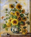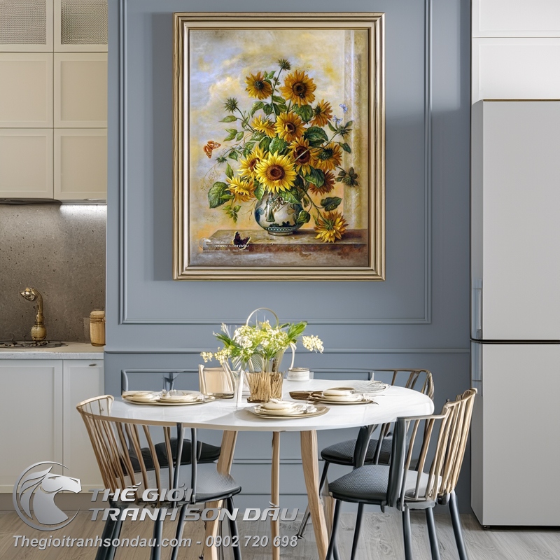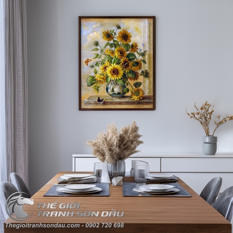 Tranh Vẽ Hoa Hướng Dương Trong Bình Gốm Sứ