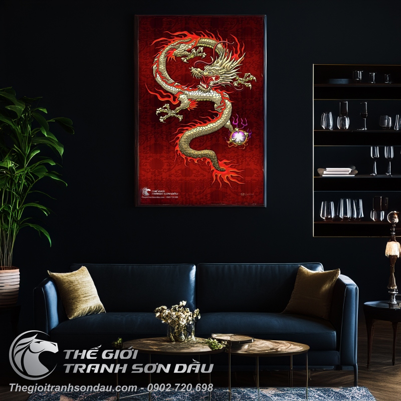 Tranh Vẽ Rồng Đỏ Phun Ngọc Lửa