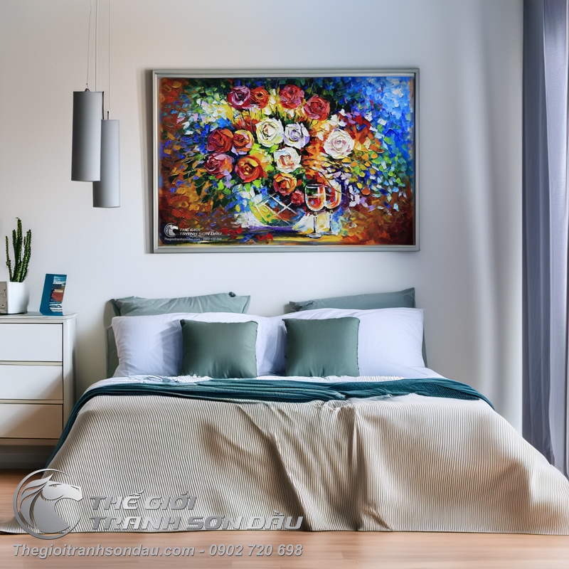 Tranh Vẽ Nghệ Thuật Bình Hoa Chất Liệu Sơn Dầu