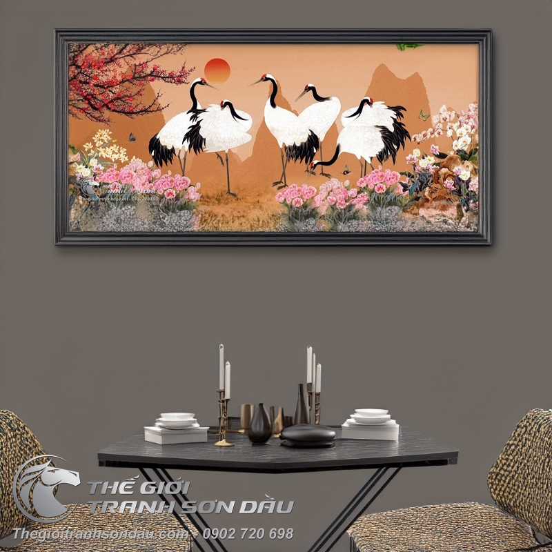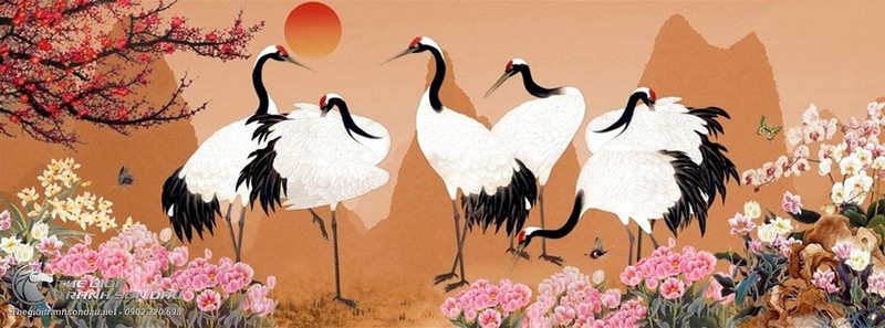 Tranh Vẽ Những Chú Chim Hạc Bên Hoàng Hôn