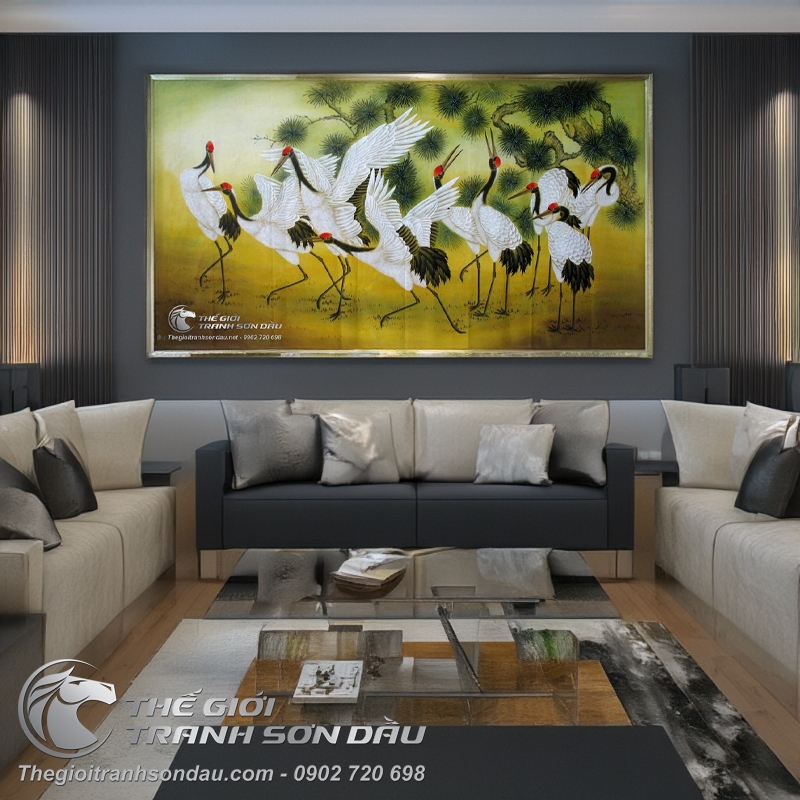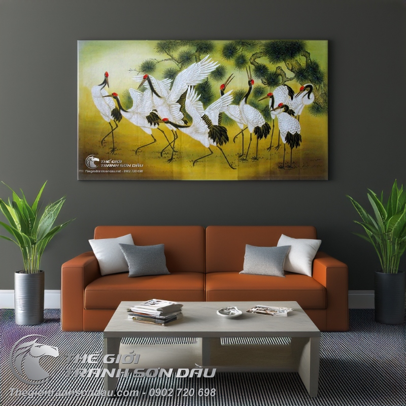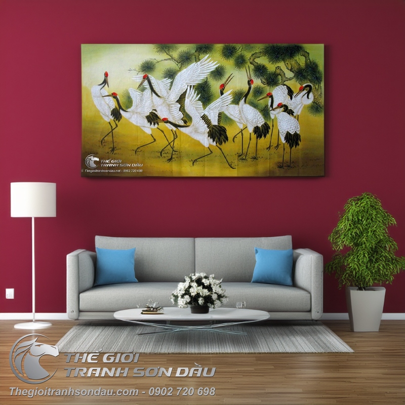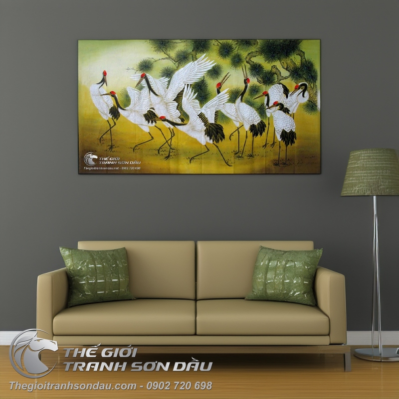 Tranh Vẽ Những Đôi Chim Hạc Bên Cây Tùng