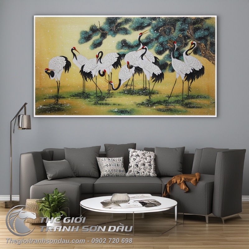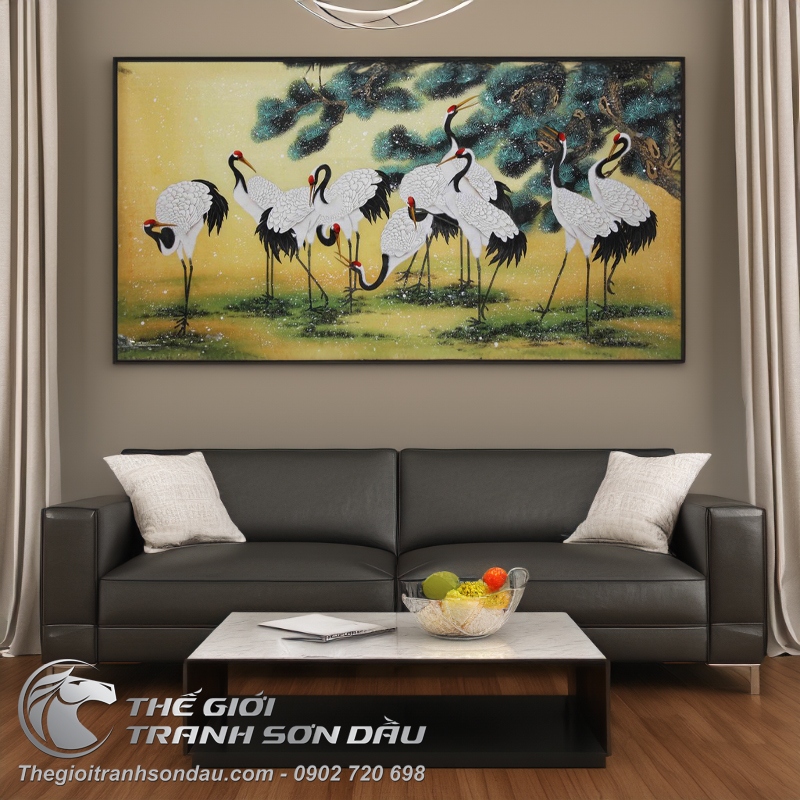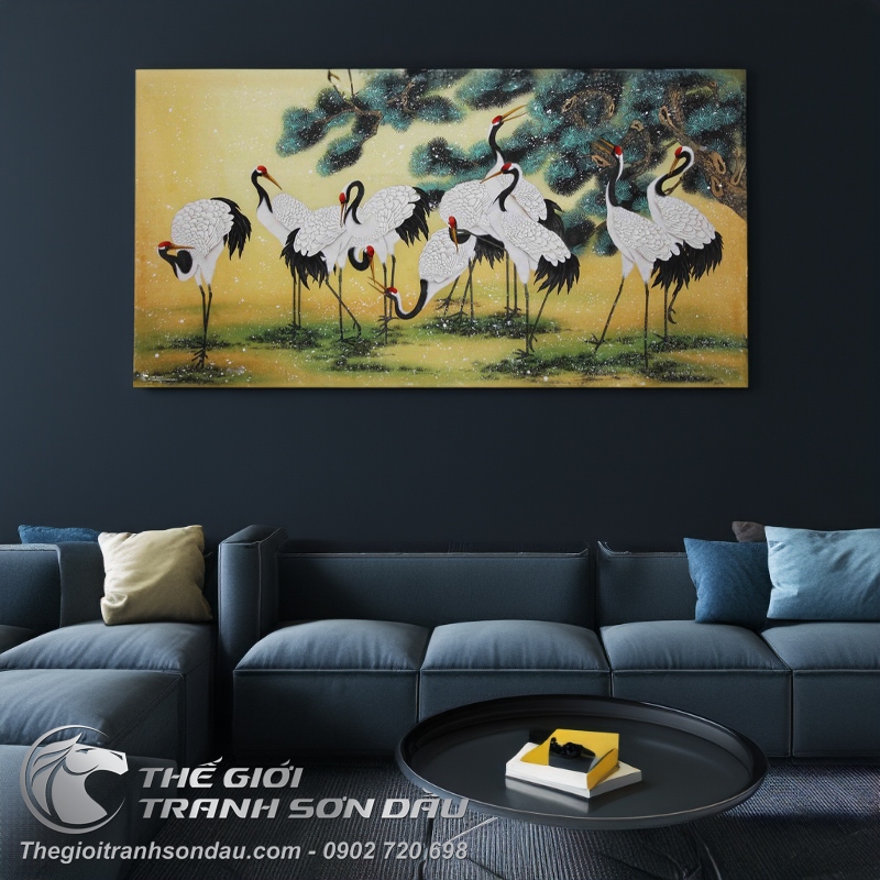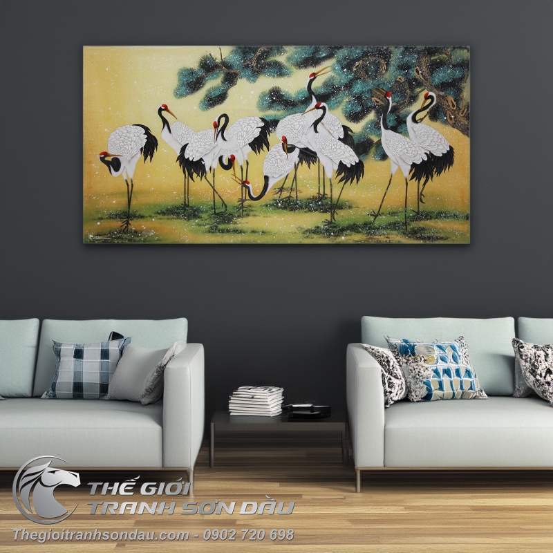 Tranh Vẽ Đôi Chim Hạc Bên Cành Đào