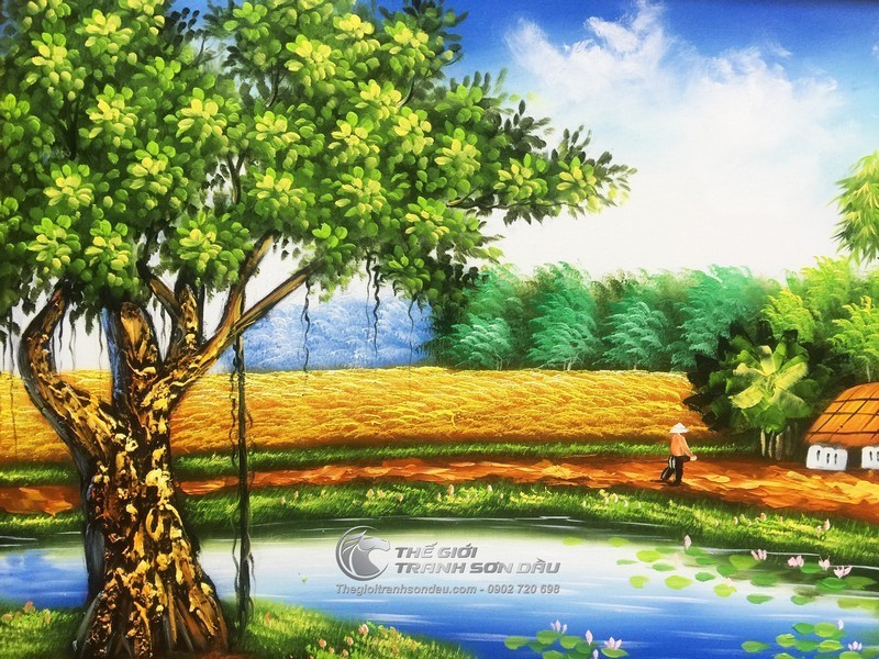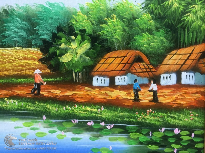 Bức tranh vẽ sơn dầu phong cảnh quê hương Việt Nam T104L là một mẫu tranh vẽ về quê hương tuyệt đẹp để mang đến cho không gian của bạn một nét đẹp thân thuộc để gợi nhớ những kỷ niệm tuyệt vời trong trái tim của mỗi con người.