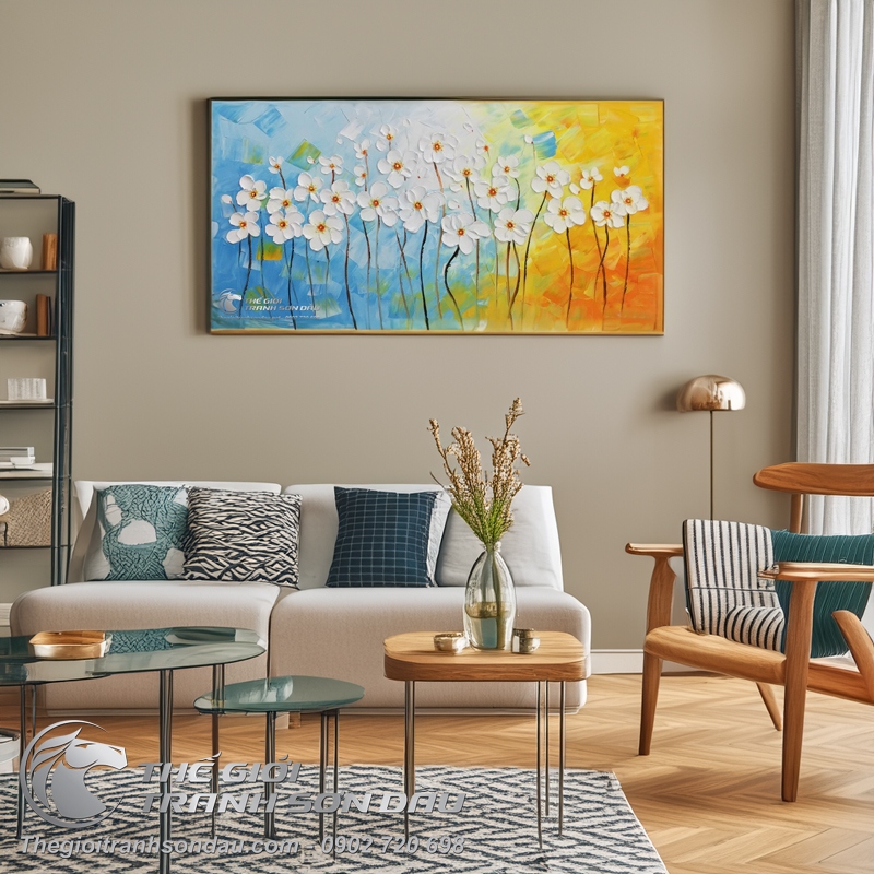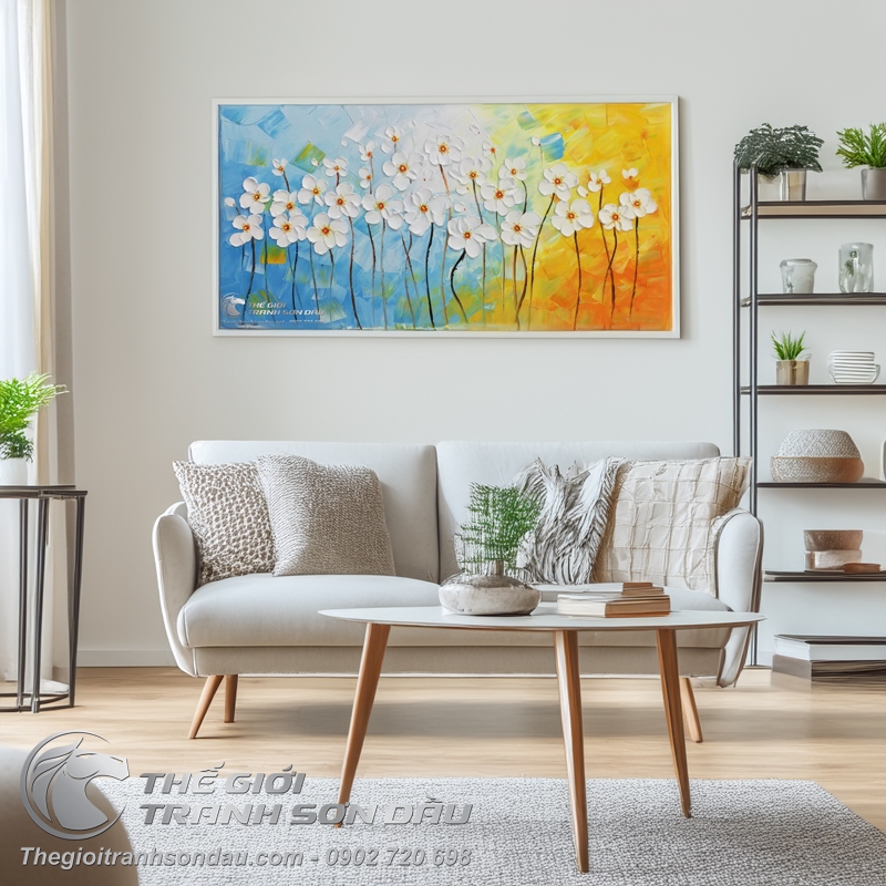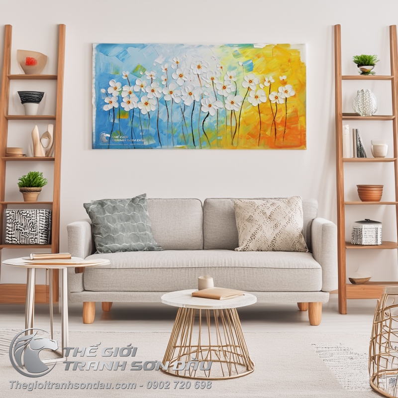 - Với những người yêu thiên nhiên, yêu những sắc hoa tươi đẹp, họ luôn muốn đắm chìm vào những hình ảnh của cỏ cây hoa lá, thế nhưng với một không gian chật hẹp thì việc lựa chọn những bức tranh vẽ hoa lá sẽ là một giải pháp tối ưu nhất, không chỉ mang lại vẻ đẹp độc đáo cho ngôi nhà mà còn tạo ra một không gian gần gũi với thiên nhiên và tràn ngập những sắc hoa.