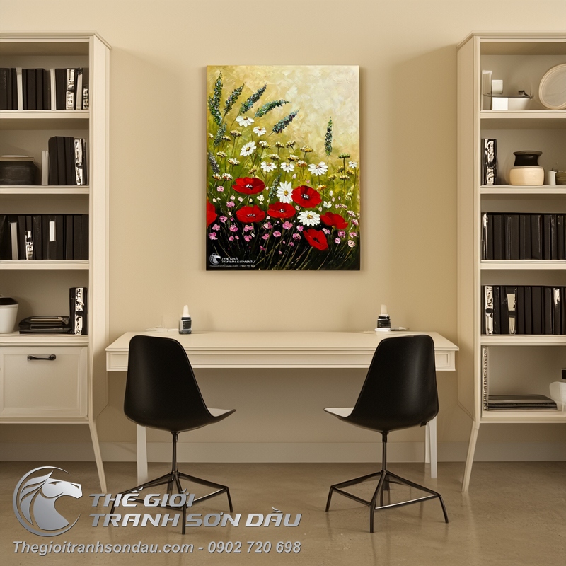 Tranh Vẽ Sơn Dầu Hoa Nở Muôn Màu
