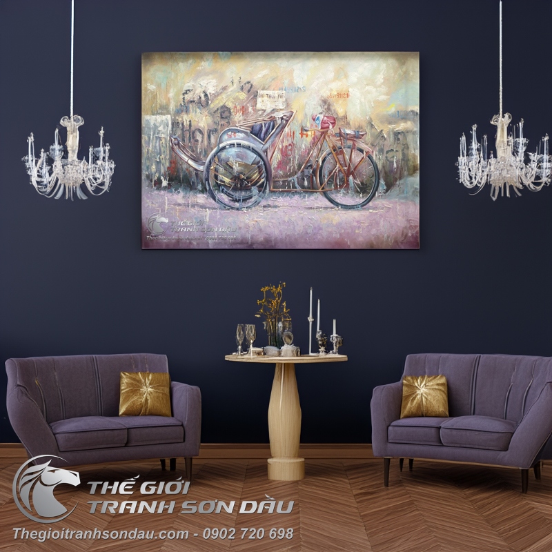 Tranh Sơn Dầu Phong Cảnh Sài Gòn Xe Xích Lô ĐẬM CHẤT NGHỆ THUẬT